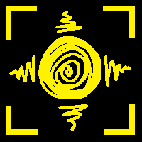 Cerchio giallo con una spirale dentro e raggi verso fuori, come un sole |